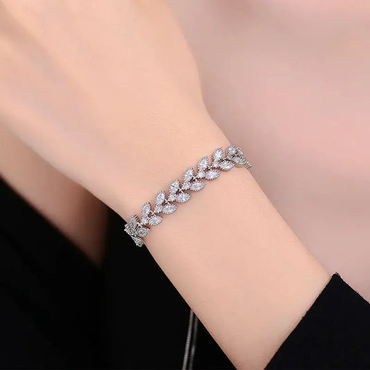 Punk-style shiny leopard head bracelet with cubic zirconia