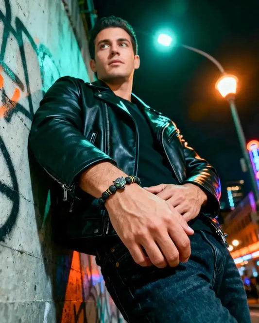Natural Stone Obsidian Magnetic Buckle Men's Leather Bracelet