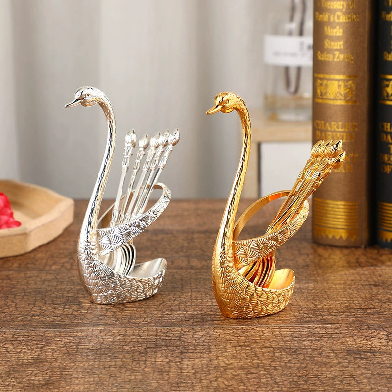 ☕️🥄Coffee Spoon Set, Including 6counts Stainless Steel Spoon & 1count Swan Base🦢