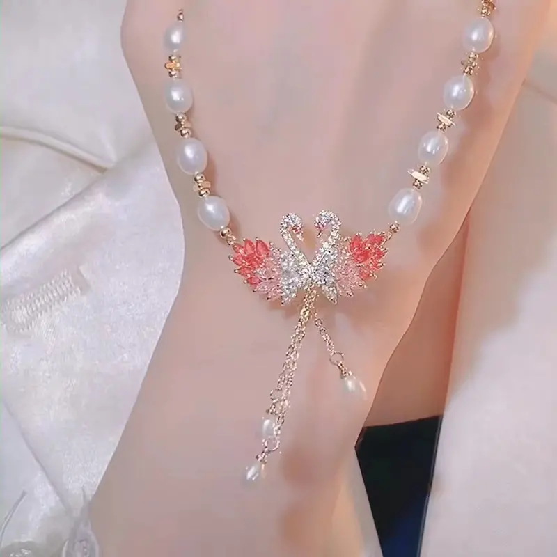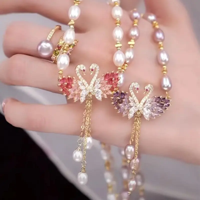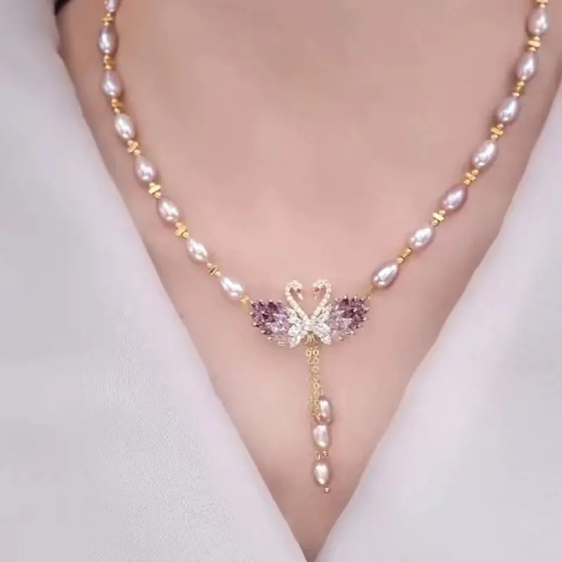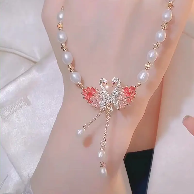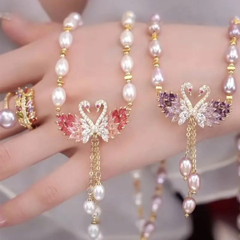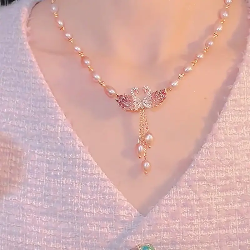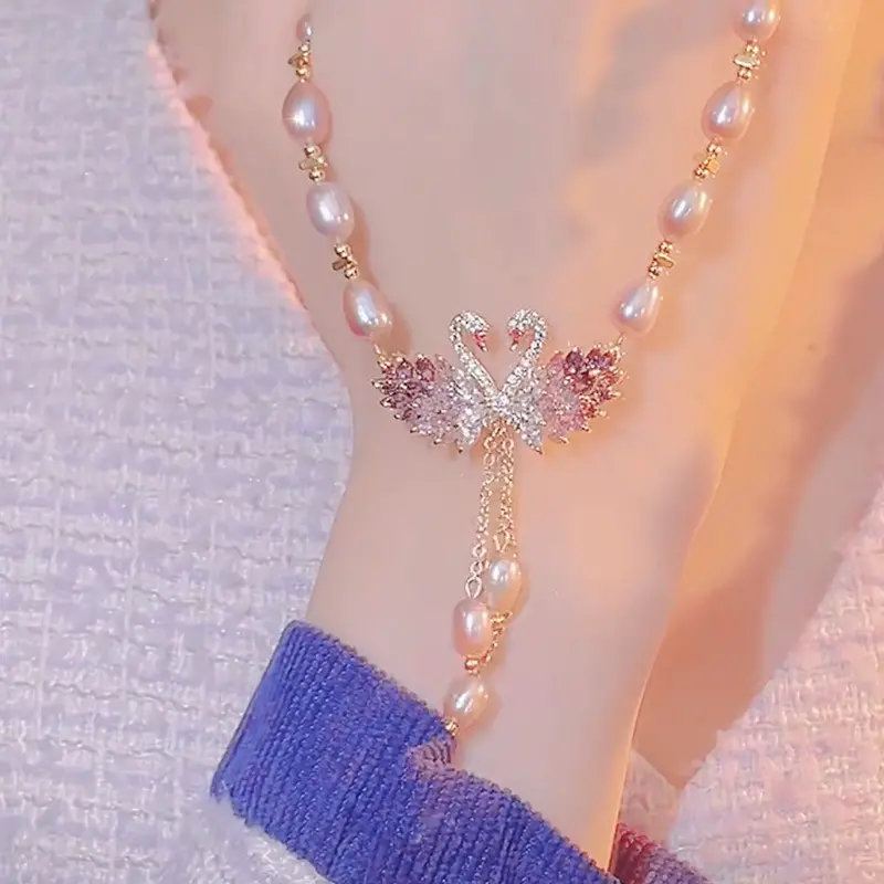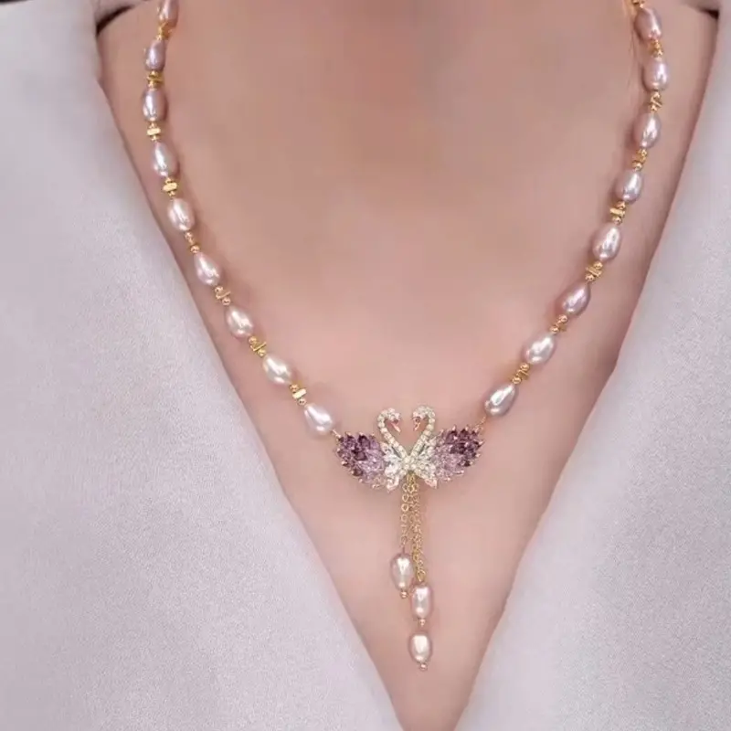 ✨✨Freshwater Pearl Necklace with Swan Pendant