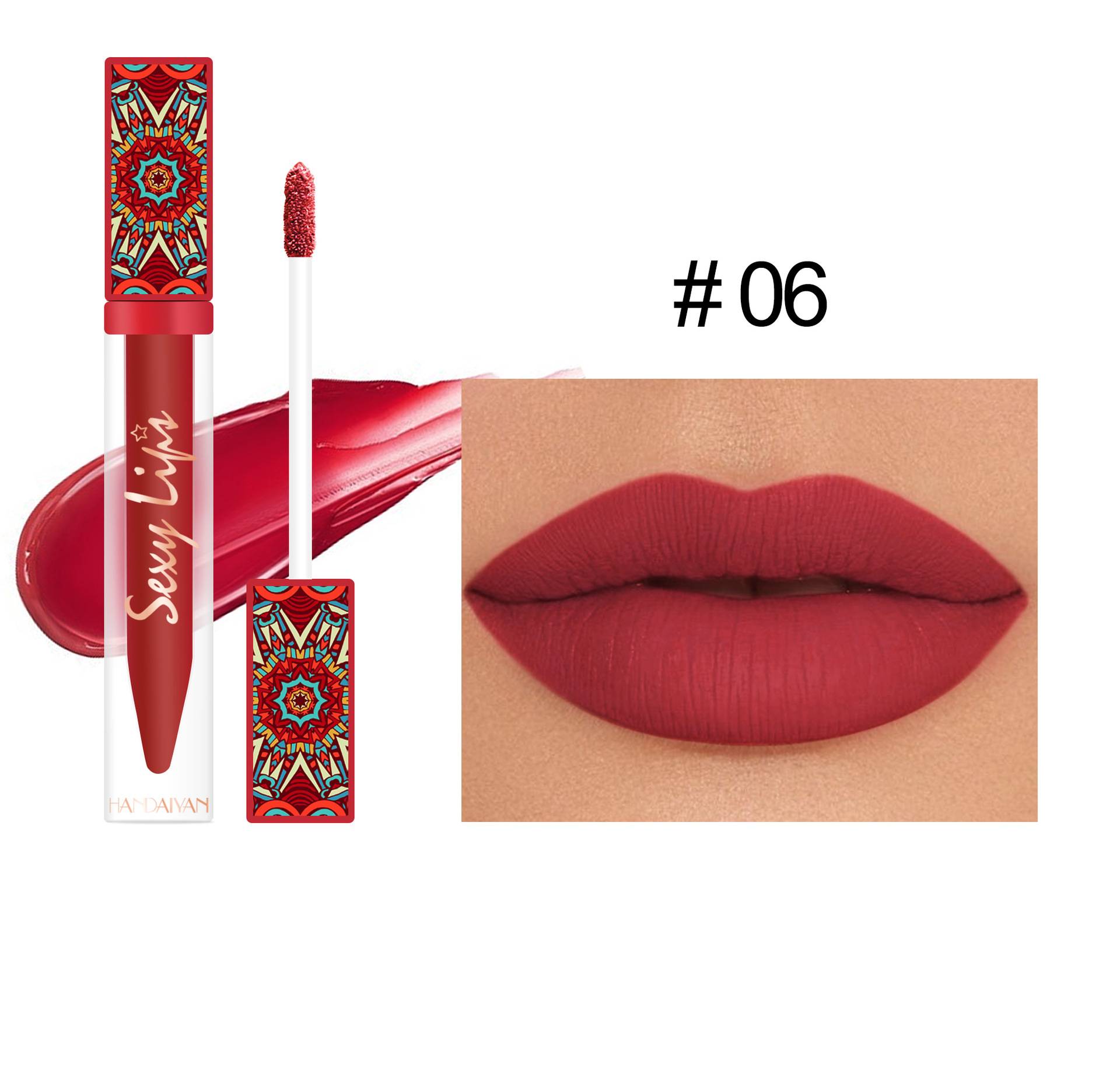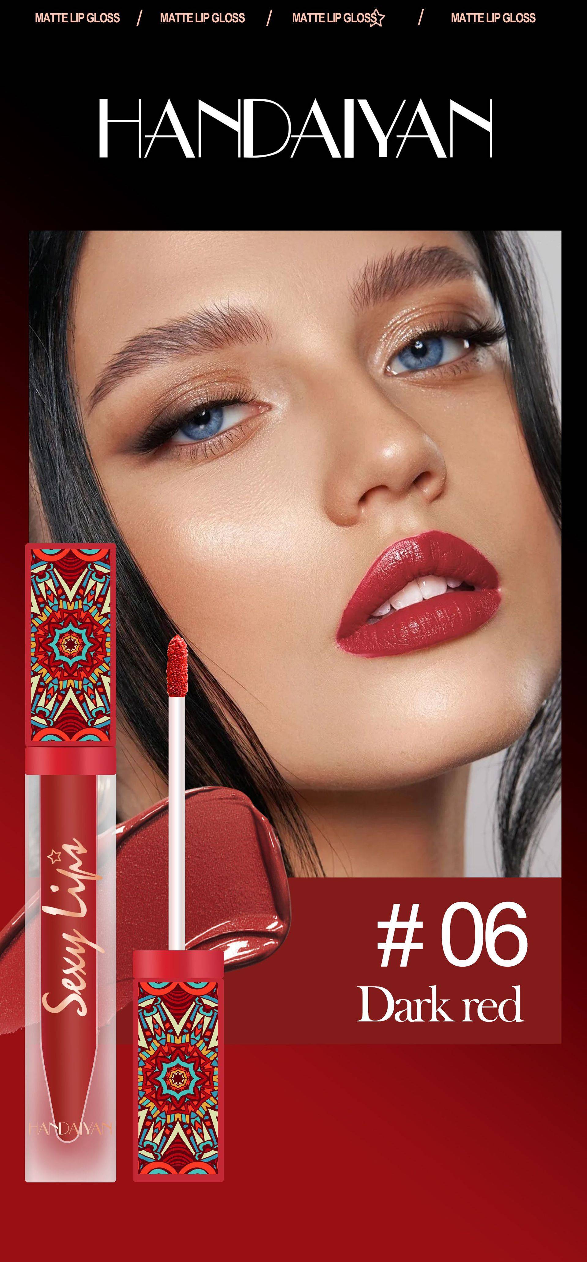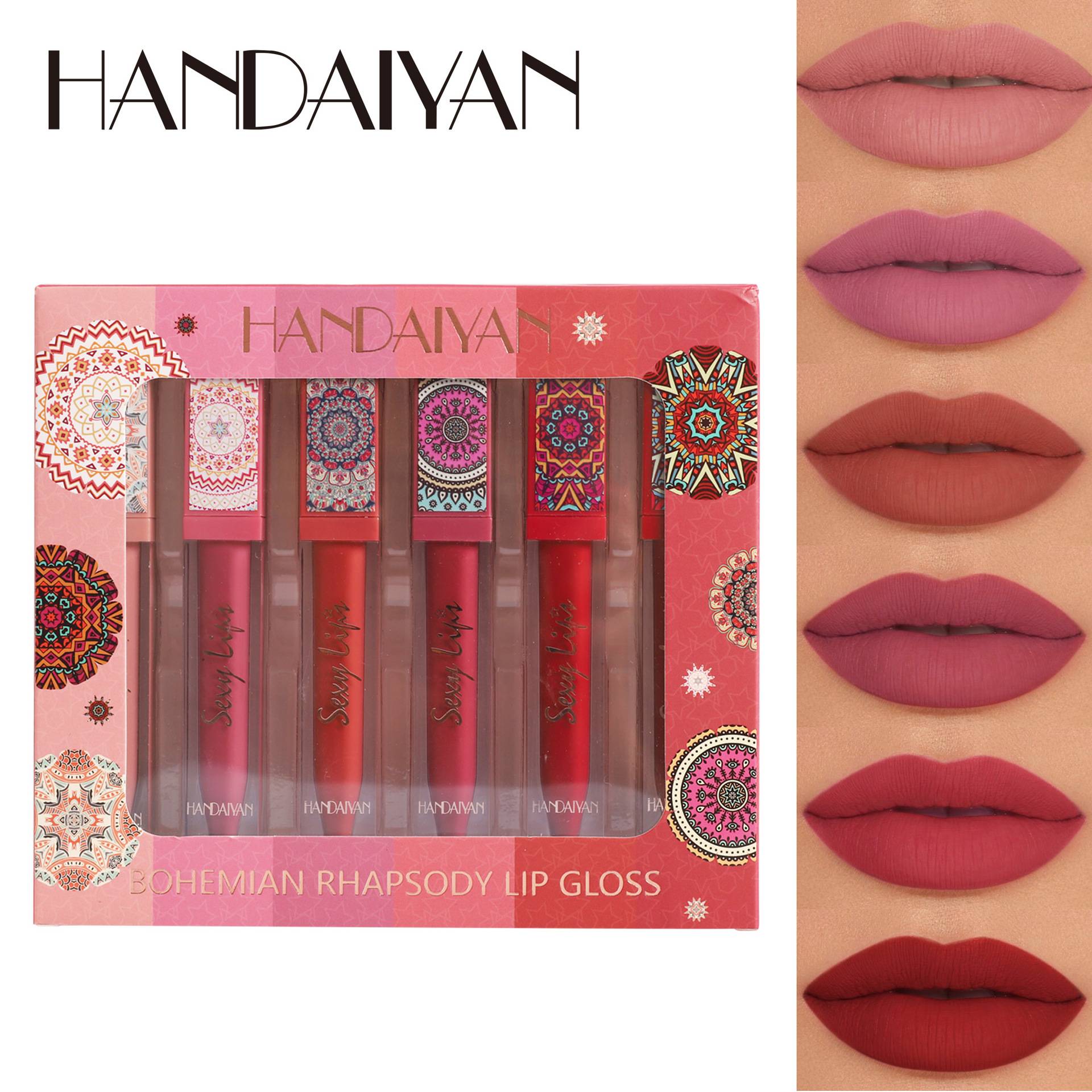 6-piece Bohemian-style lip gloss set, long-lasting, waterproof, matte lipstick