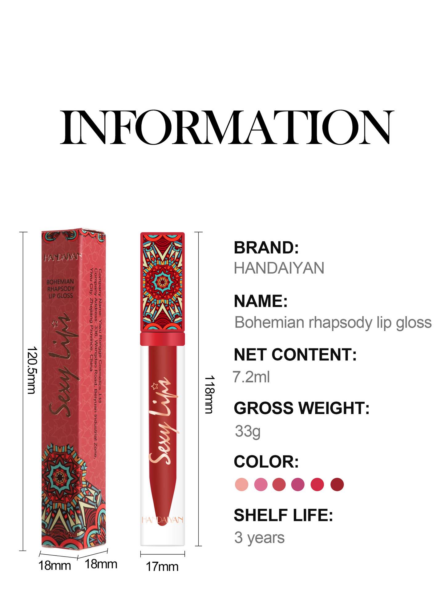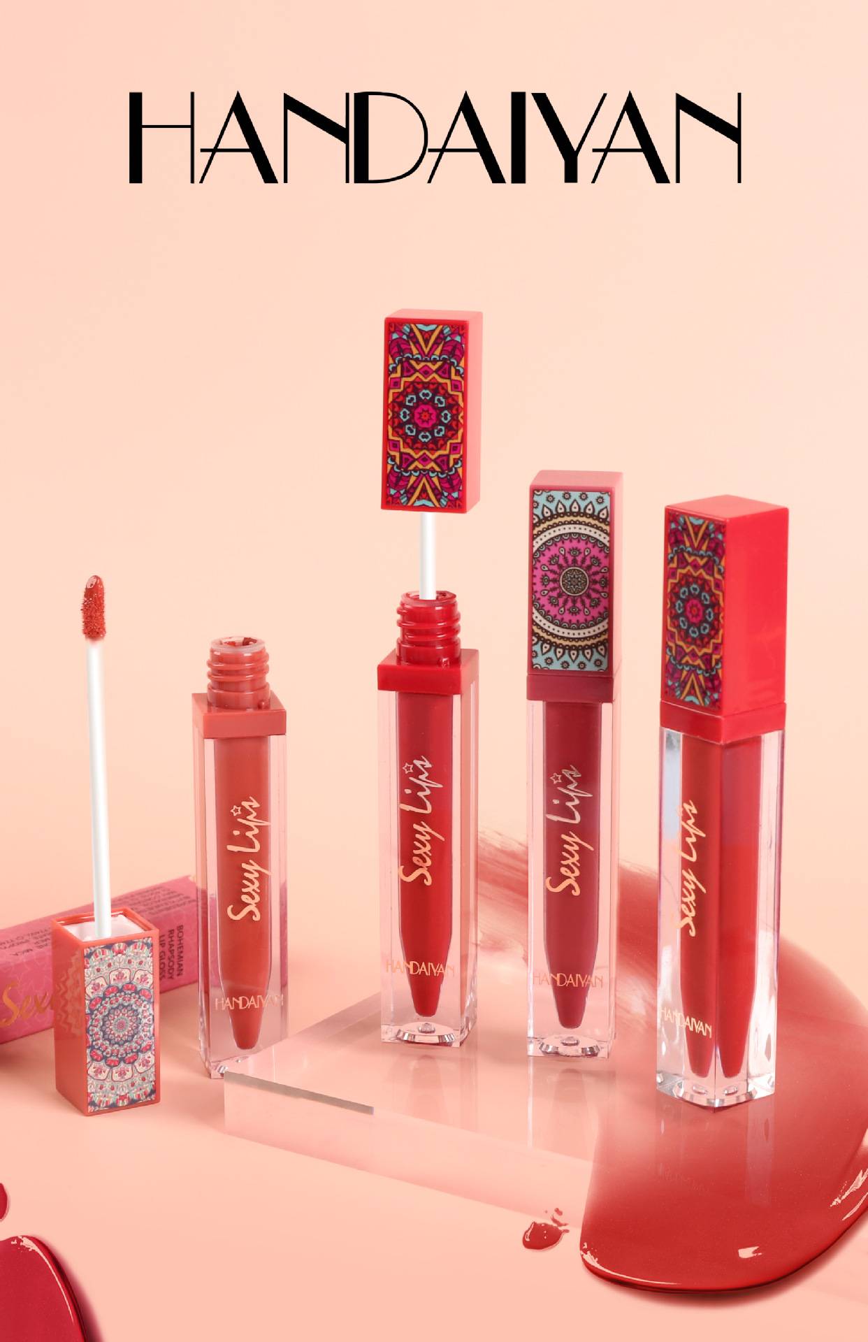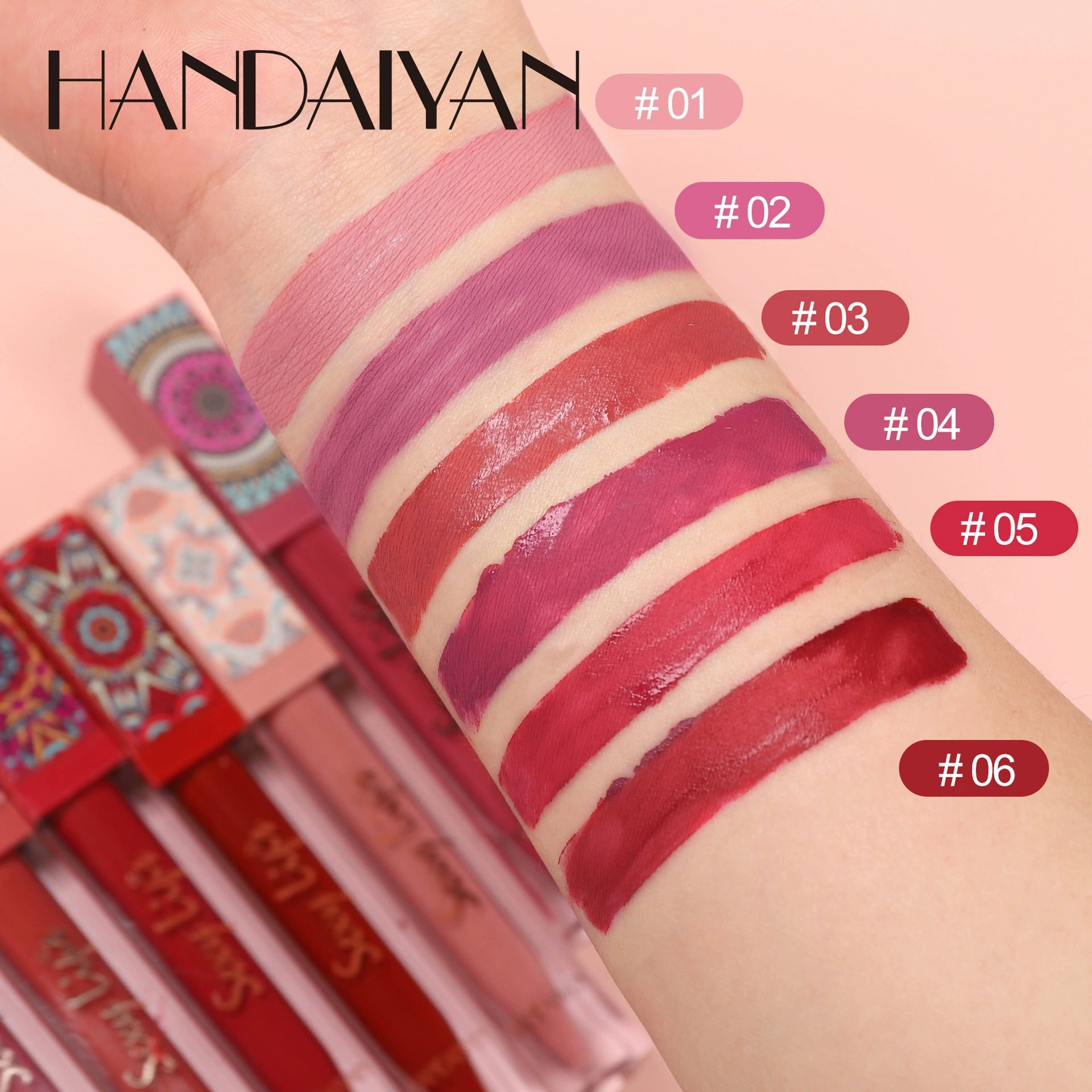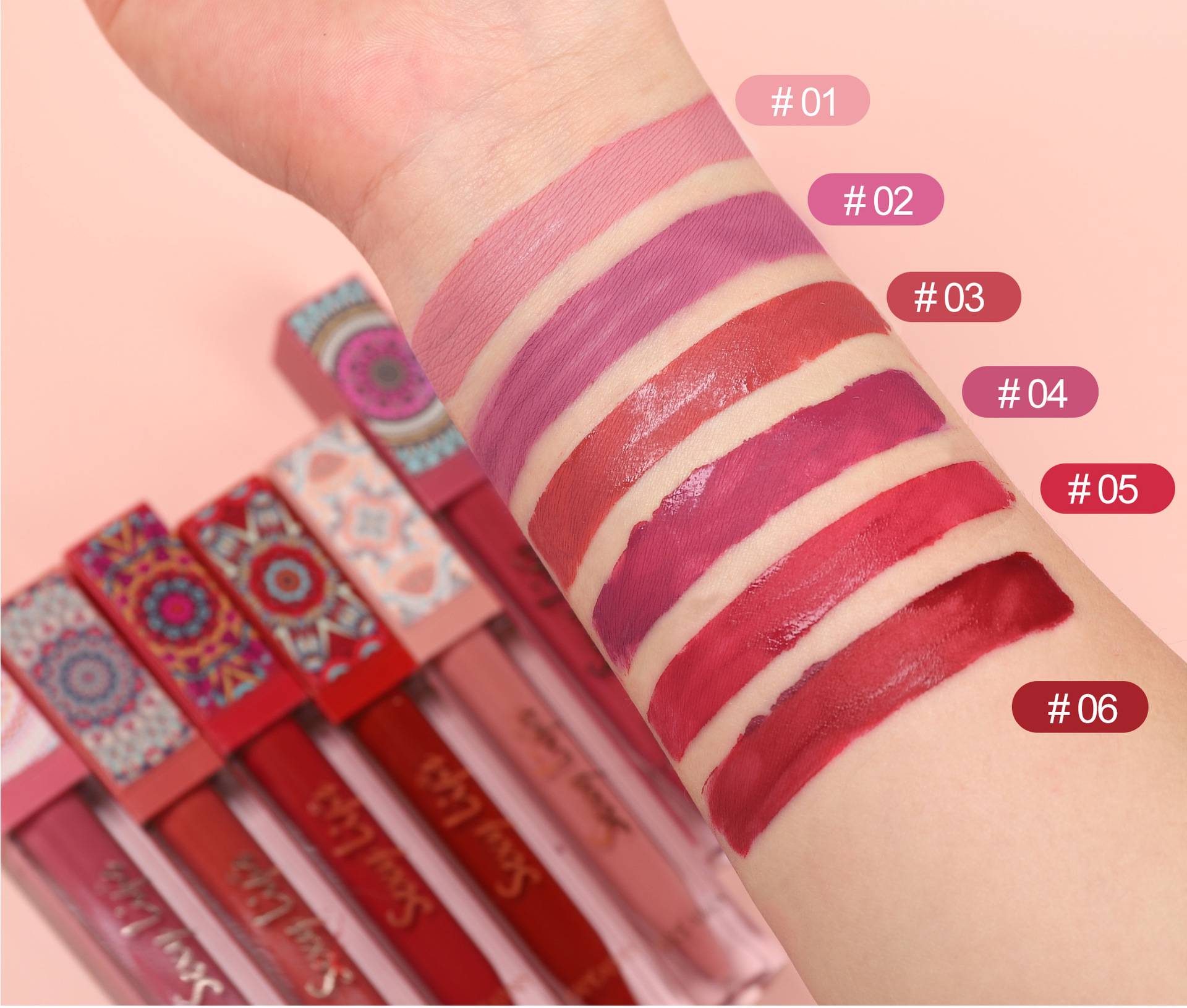 6-piece Bohemian-style lip gloss set, long-lasting, waterproof, matte lipstick